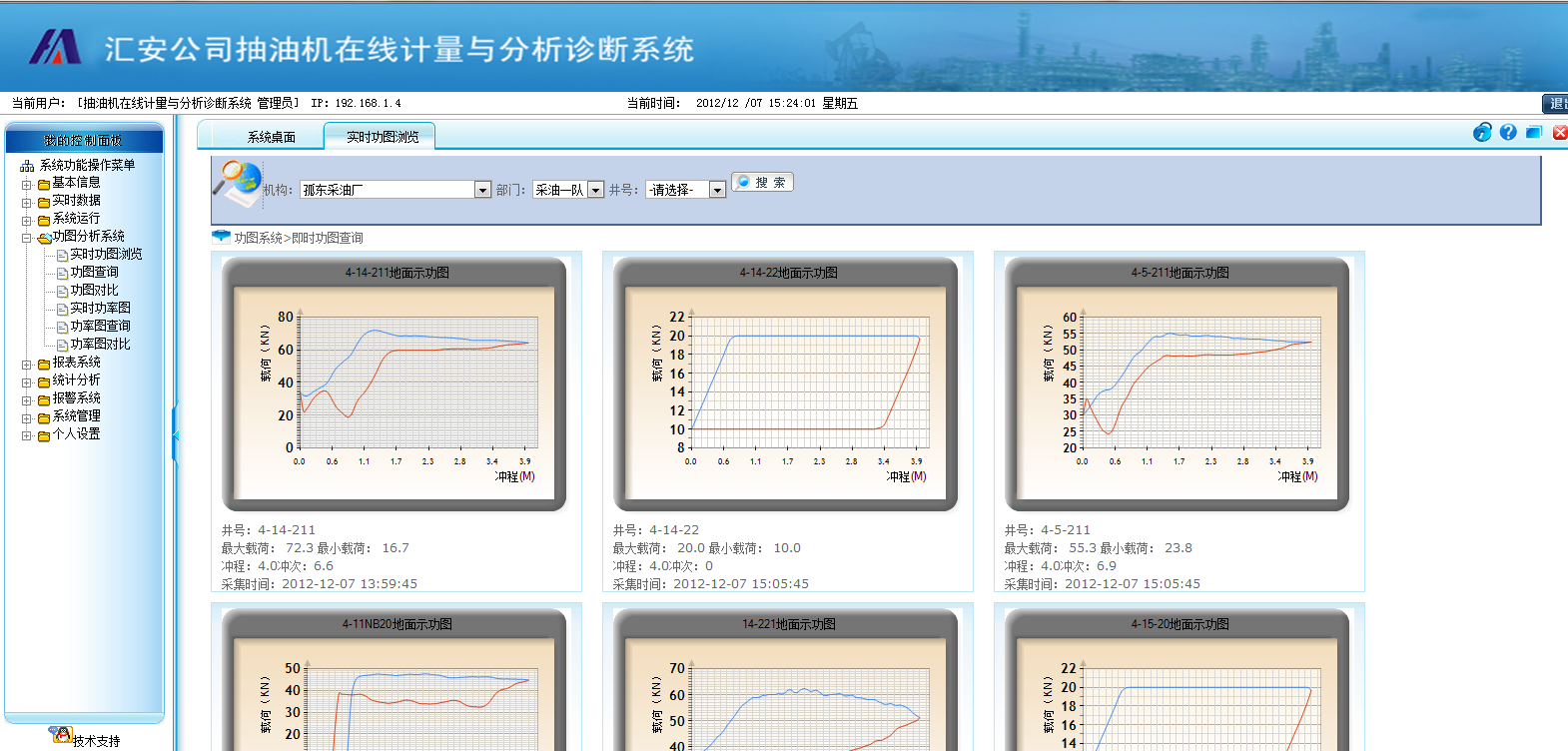 实现对采集的功图进行查询浏览和单口油井的示功图进行对比分析,及时掌握井口功图的变化状况,进而了解每口井的工况。